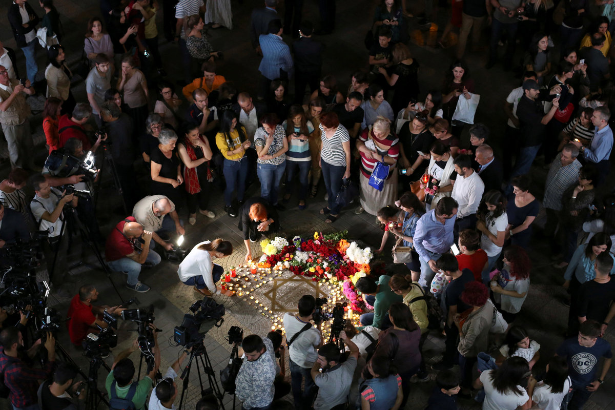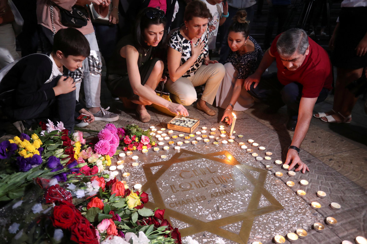 Large crowds had gathered on the streets of Yerevan on Monday and on the central square named after him to light candles and mourn, while posters with his portrait appeared in the streets the next day.