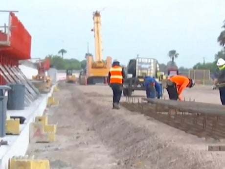 As hurricane season approaches, construction workers are racing against time amid fears that storms could devastate the area around Mission, Texas.