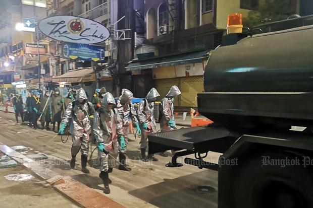The army Thursday morning began spraying roads in Bangkok with disinfectant to combat the spread of the Covid-19 virus.