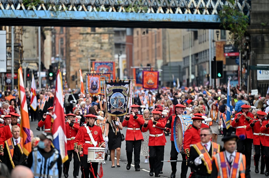 Police have made several arrests after “racist and sectarian singing” took place during Orange Order processions that shut streets across Glasgow.