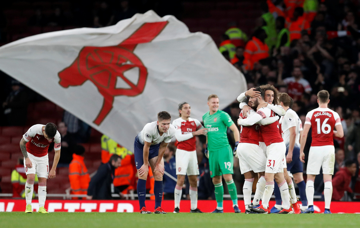 LONDON (Reuters) - Arsenal came out on top in the north London derby on Sunday, sinking rivals Tottenham Hotspur 4-2 in a scintillating match at the Emirates and leapfrogging them to go fourth in the Premier League table.