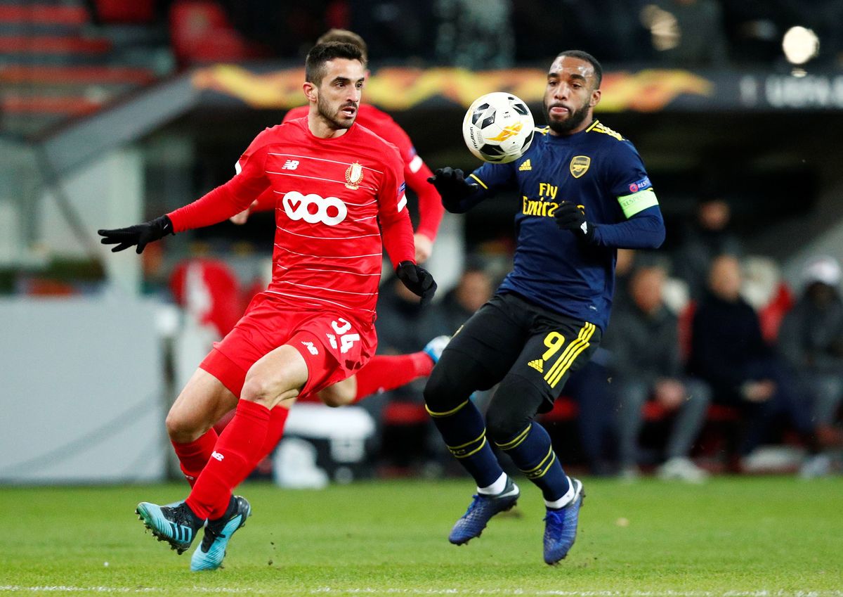 Soccer Football - Europa League - Group F - Standard Liege v Arsenal - Stade Maurice Dufrasne, Liege, Belgium - December 12, 2019 Arsenal's Alexandre Lacazette in action with Standard Liege's Konstantinos Laifis REUTERS/Francois Lenoir