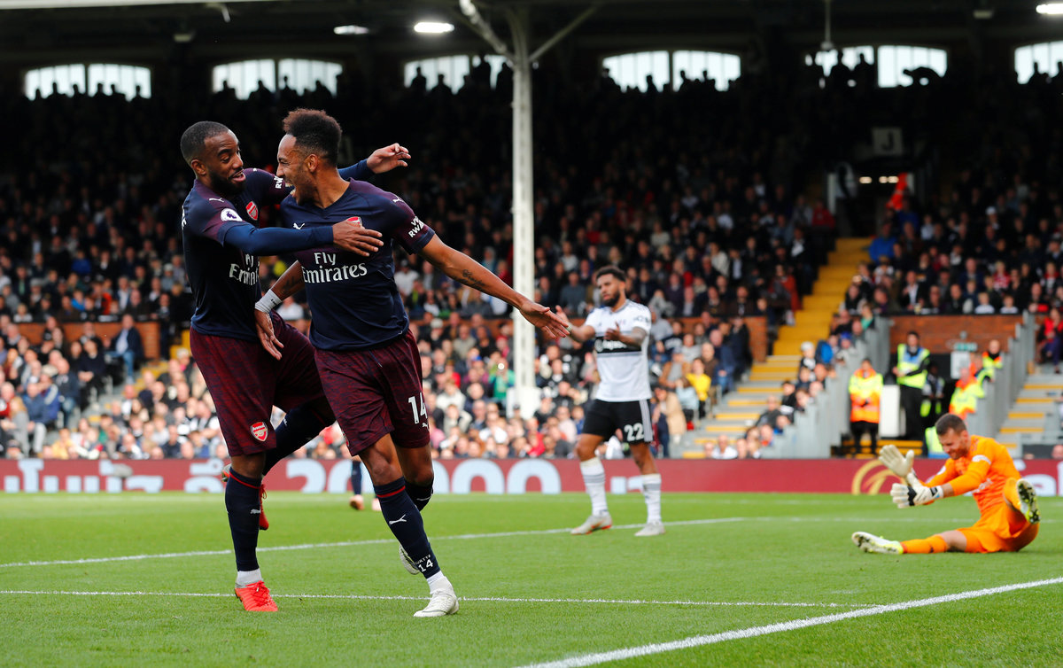 (Reuters) - Two goals from Frenchman Alexandre Lacazette, a wonderful back-heeled strike from Aaron Ramsey and two more from Pierre-Emerick Aubameyang gave Arsenal a 5-1 win over Fulham at Craven Cottage in the Premier League on Sunday.