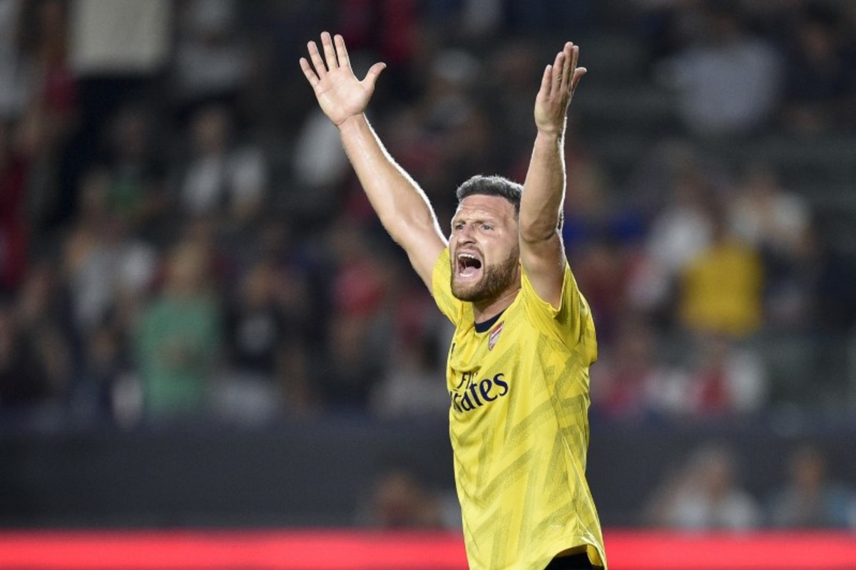 Jul 17, 2019; Carson, CA, USA; Arsenal defender Shkodran Mustafi (20) reacts during the second half of the International Champions Cup soccer series against Bayern Munich at Dignity Health Sports Park. Credit: Kelvin Kuo-USA TODAY Sports