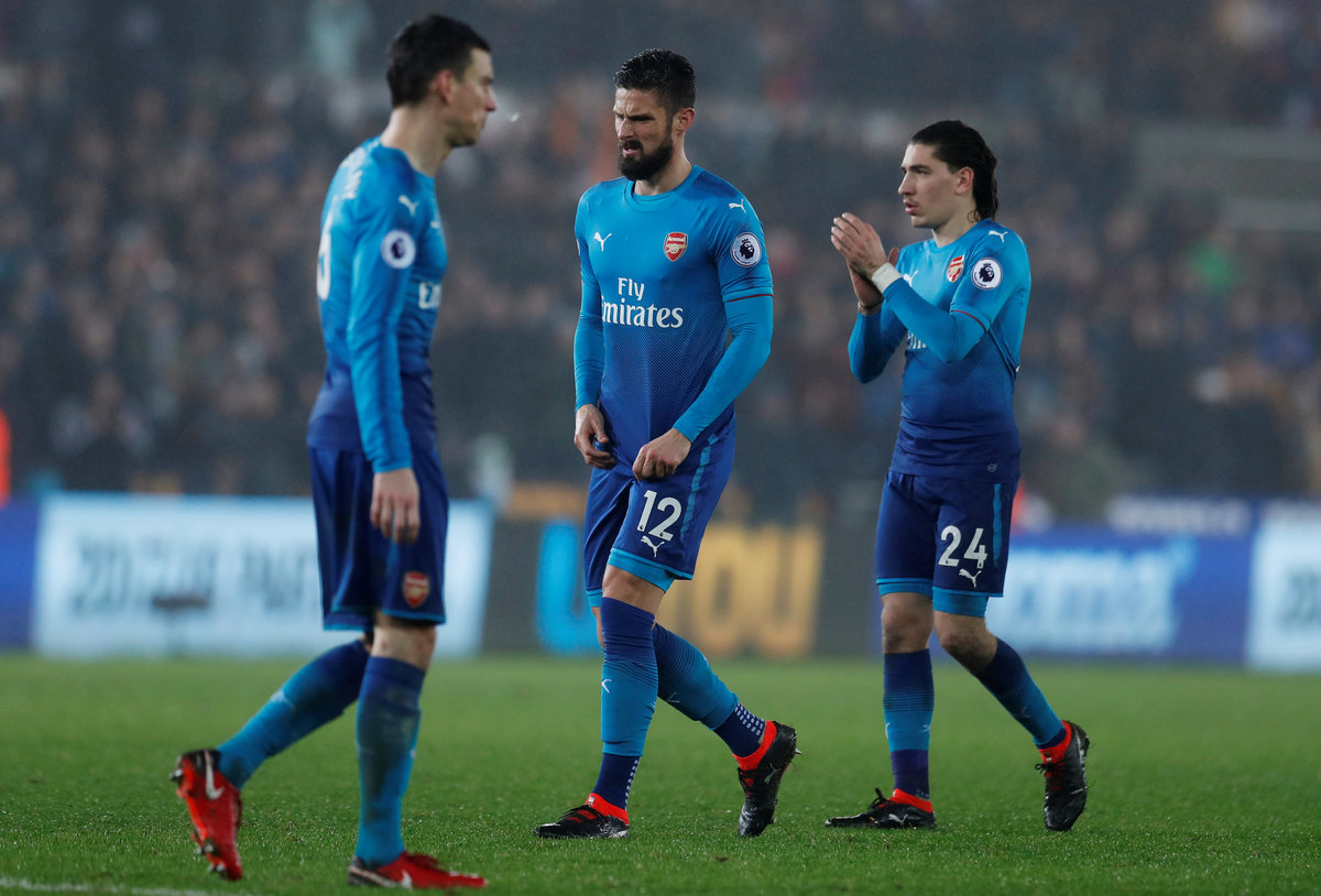 Arsenal suffered another painful Premier League defeat as Swansea City capitalised on some glaring errors to win 3-1 on Tuesday, boosting their survival hopes and denting the visitors' top four chances.