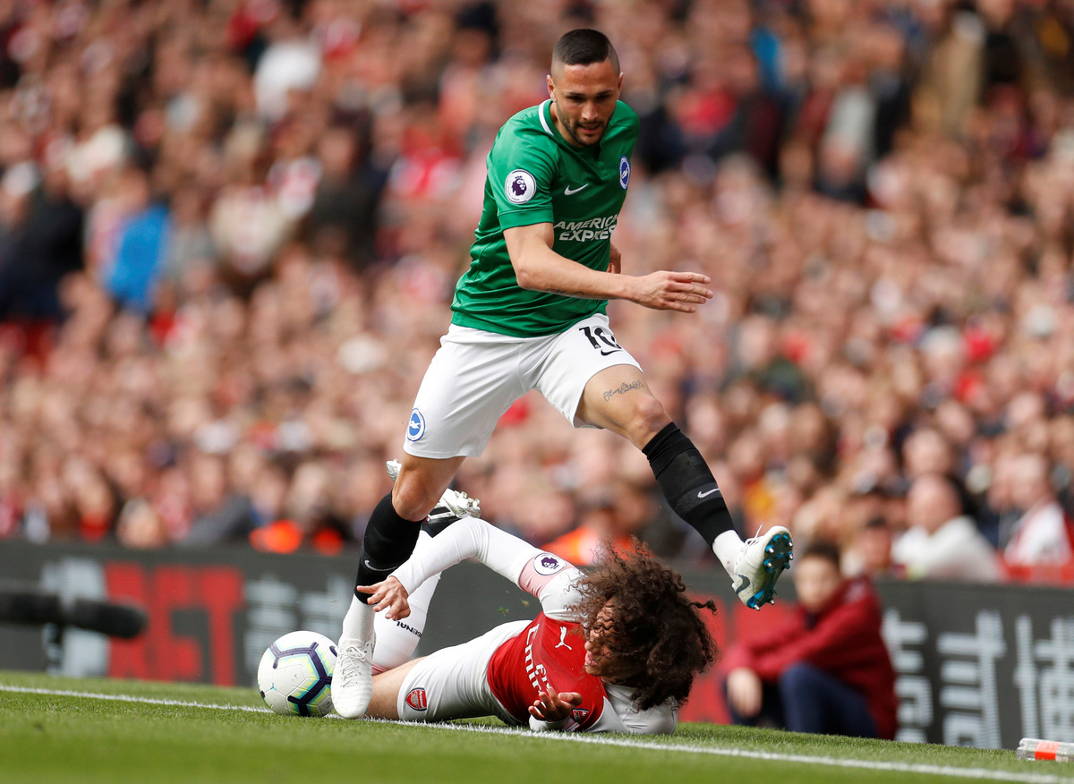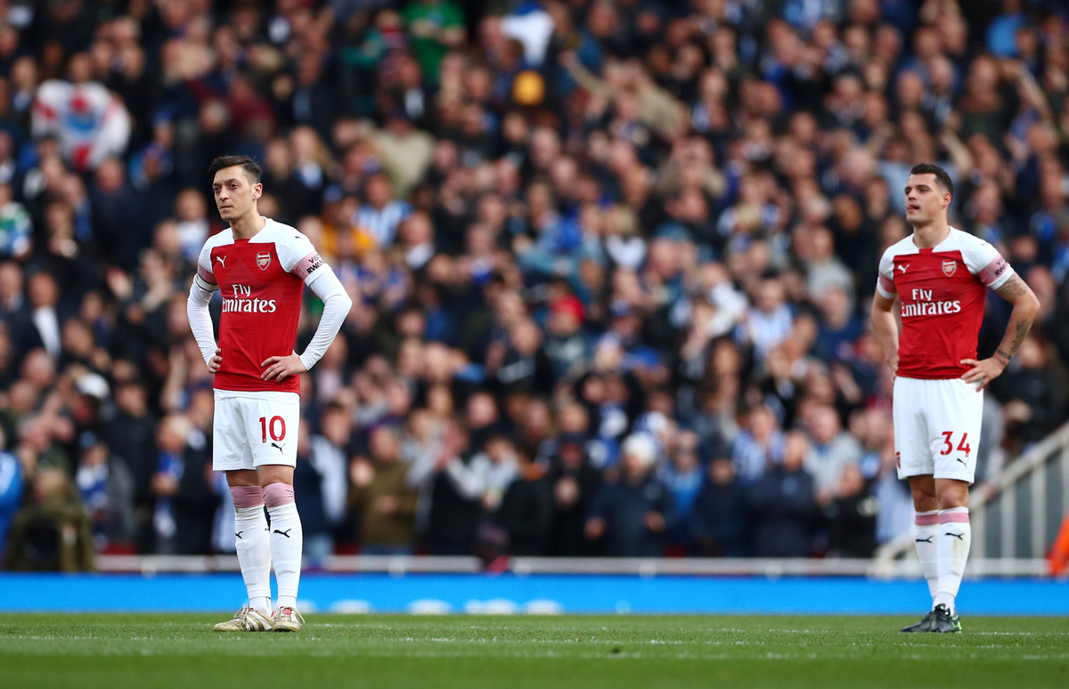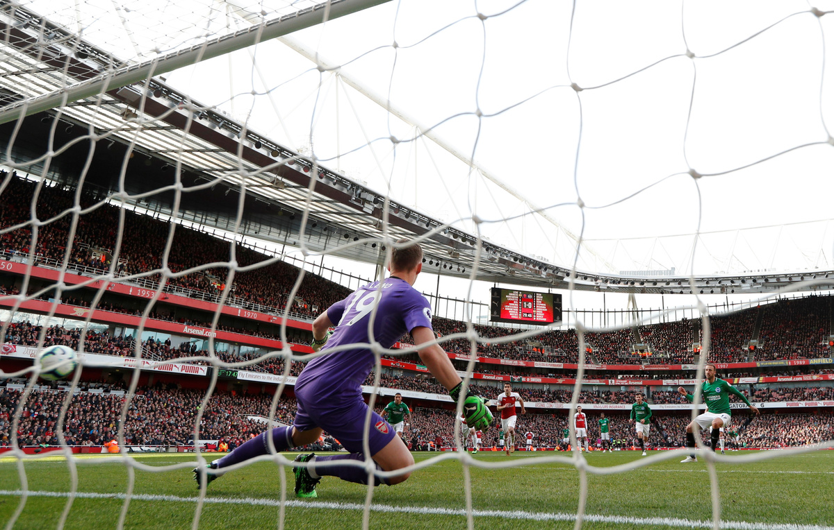 Brighton levelled in the 61st minute when the dangerous Solly March made a strong goalwards run and Granit Xhaka was panicked into conceding a penalty that Murray converted.