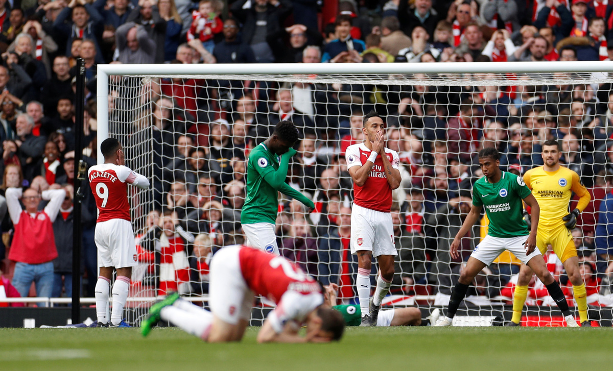 Needing victory to give themselves a realistic chance of securing a Champions League spot, they led through Pierre-Emerick Aubameyang's early penalty at the Emirates only for Glenn Murray's spot kick to drag Brighton level in a frantic second half.