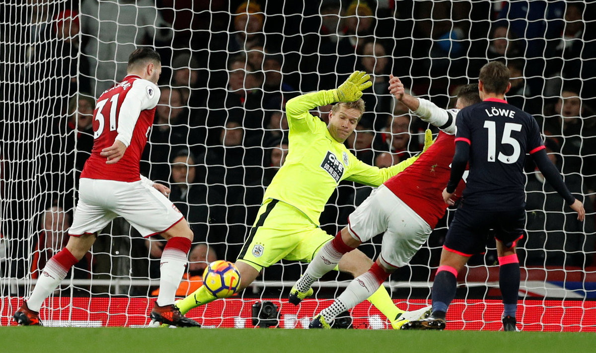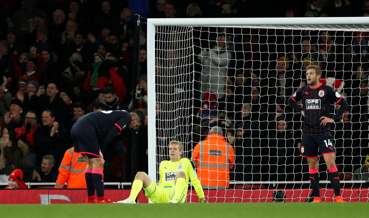 Soccer Football - Premier League - Arsenal vs Huddersfield Town - Emirates Stadium, London, Britain - November 29, 2017 Huddersfield Town’s Jonas Lossl and team mates look dejected after conceding a goal Action Images via Reuters/John Sibley Soccer Football - Premier League - Arsenal vs Huddersfield Town - Emirates Stadium, London, Britain - November 29, 2017 Arsenal's Mesut Ozil celebrates scoring their fourth goal with Alexis Sanchez REUTERS/Dylan Martinez Soccer Football - Premier League - Arsenal vs Huddersfield Town - Emirates Stadium, London, Britain - November 29, 2017 Arsenal manager Arsene Wenger REUTERS/Dylan Martinez Soccer Football - Premier League - Arsenal vs Huddersfield Town - Emirates Stadium, London, Britain - November 29, 2017 Arsenal's Olivier Giroud celebrates scoring their fifth goal with team mates Action Images via Reuters/John Sibley Soccer Football - Premier League - Arsenal vs Huddersfield Town - Emirates Stadium, London, Britain - November 29, 2017 Arsenal's Olivier Giroud scores their fifth goal Action Images via Reuters/John Sibley Soccer Football - Premier League - Arsenal vs Huddersfield Town - Emirates Stadium, London, Britain - November 29, 2017 Arsenal celebrate a goal REUTERS/Dylan Martinez Soccer Football - Premier League - Arsenal vs Huddersfield Town - Emirates Stadium, London, Britain - November 29, 2017 Arsenal's Jack Wilshere in action with Huddersfield Town’s Danny Williams