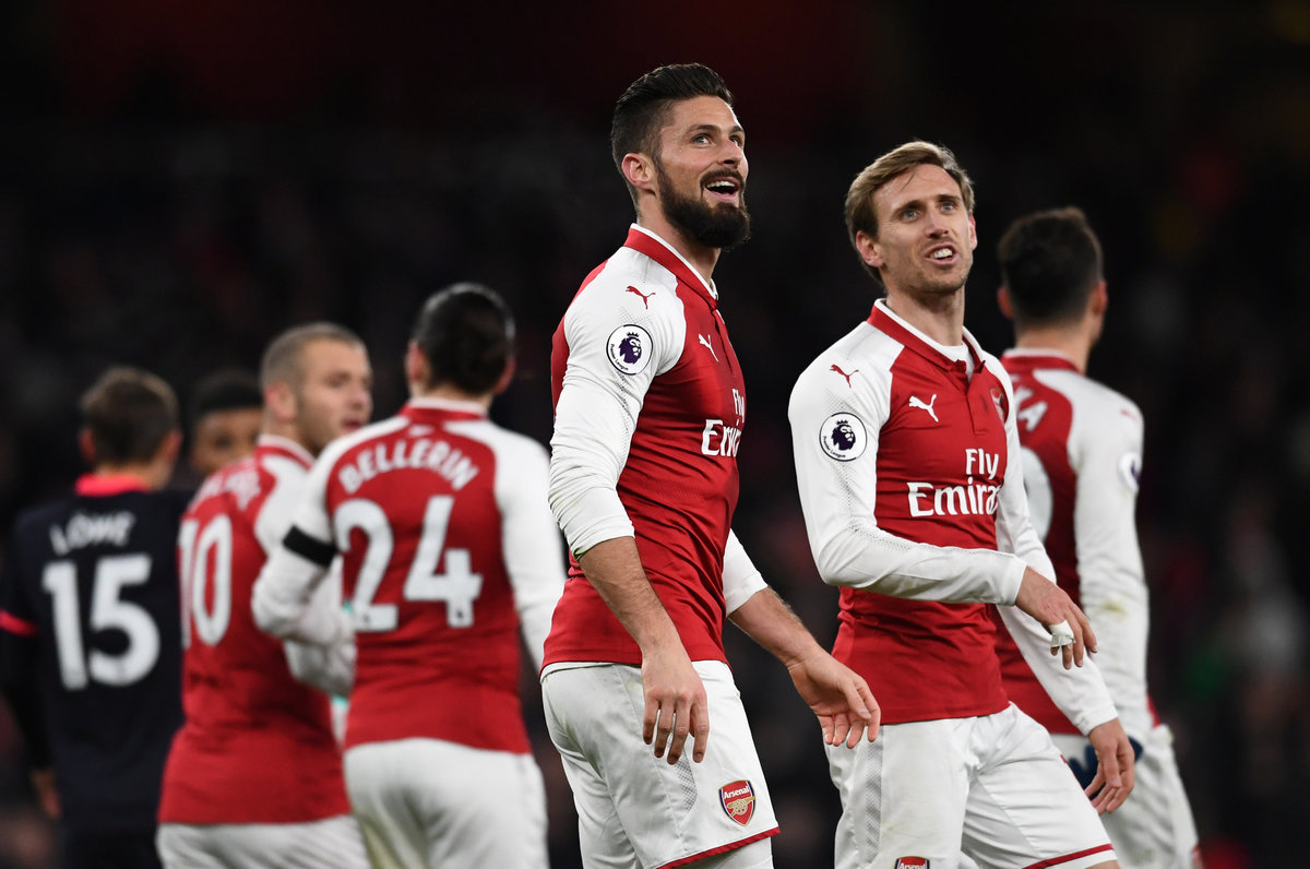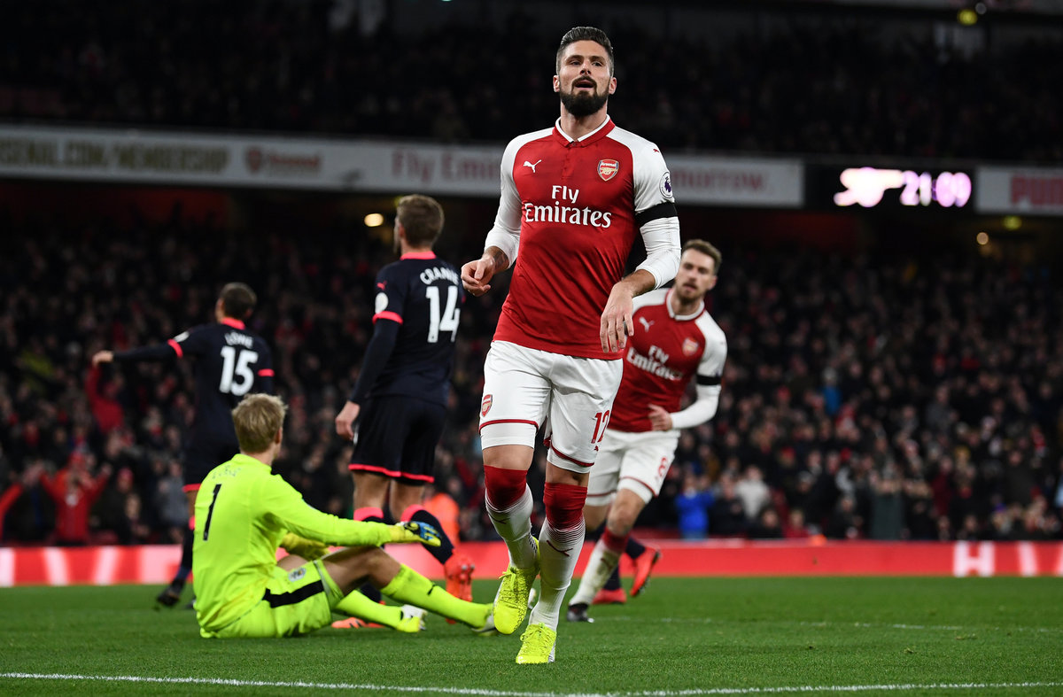 Olivier Giroud came off the bench to score twice as Arsenal remained in fourth place, 12 points behind leaders Manchester City and two ahead of fifth-placed Liverpool.