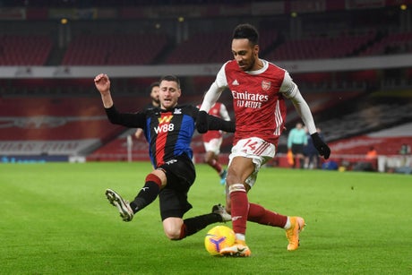Pierre-Emerick Aubemayang saw a fierce drive saved and Christian Benteke headed one towards goal in the chances of the first half, with James Tomkins nodding against the crossbar in between.