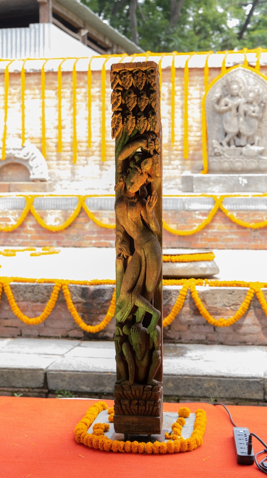 The 1.3m strut was repatriated in a ceremony near Kathmandu on Tuesday, after being inherited by the Art Gallery of New South Wales (AGNSW) in 2000.