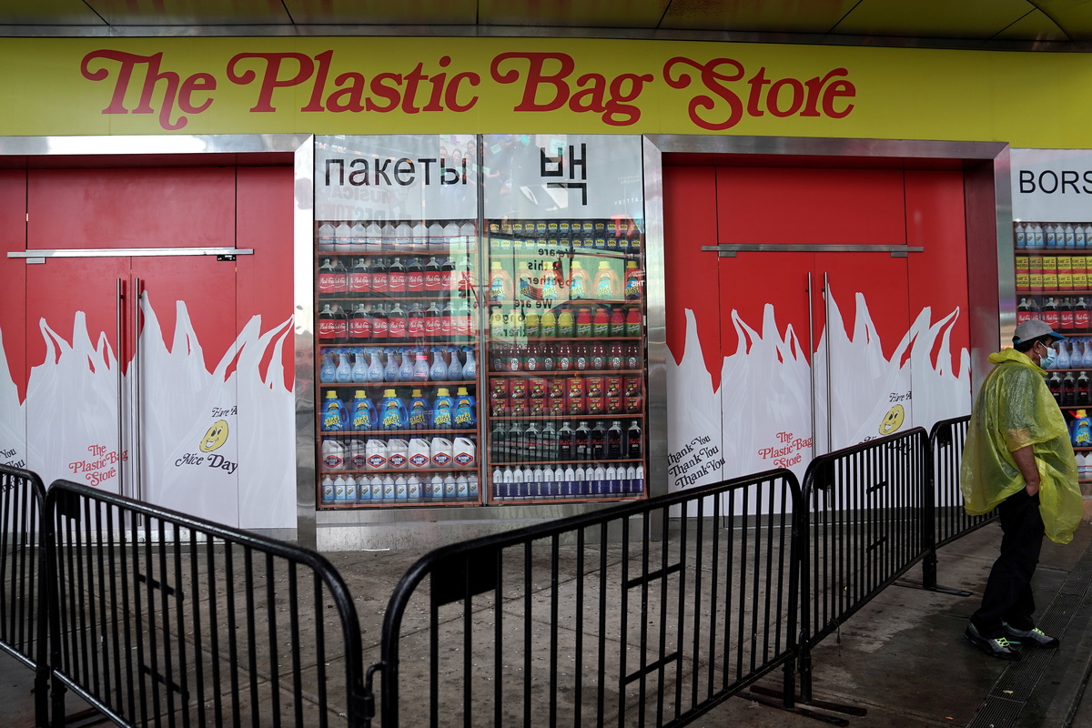 "There are humorous and satirical takes on everyday products that highlight the amount of waste that we're using, and the environmental problems related," said Brooklyn artist and creator of The Plastic Bag Store, Robin Frohardt.