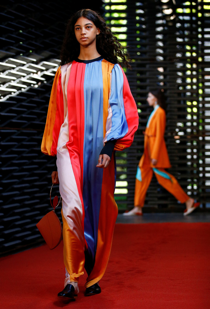 LONDON (Reuters) - Flowing lines and vibrant colors dominated the catwalk at the Roksanda fashion show on Monday, with the designer looking to art and architecture as inspiration, while the models' diversity at Steven Tai's presentation challenged perceptions of beauty.