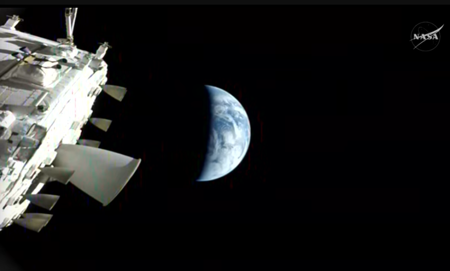 Eight days and 21 hours into the historic mission, and all is calm aboard the Orion spacecraft. Earth is becoming imperceptibly bigger out of the capsule’s windows, with the Pacific Ocean shining brightly on the day-side of the planet.