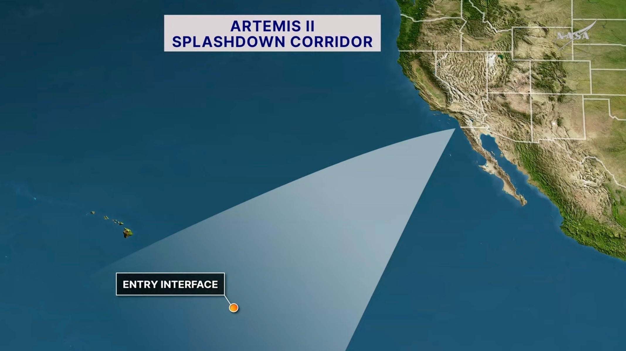 • 8:07 p.m.: Slowing to 20 mph, Orion will splash down in the Pacific Ocean off the coast of San Diego, completing the Artemis II crew’s return to Earth and a 694,481-mile journey.