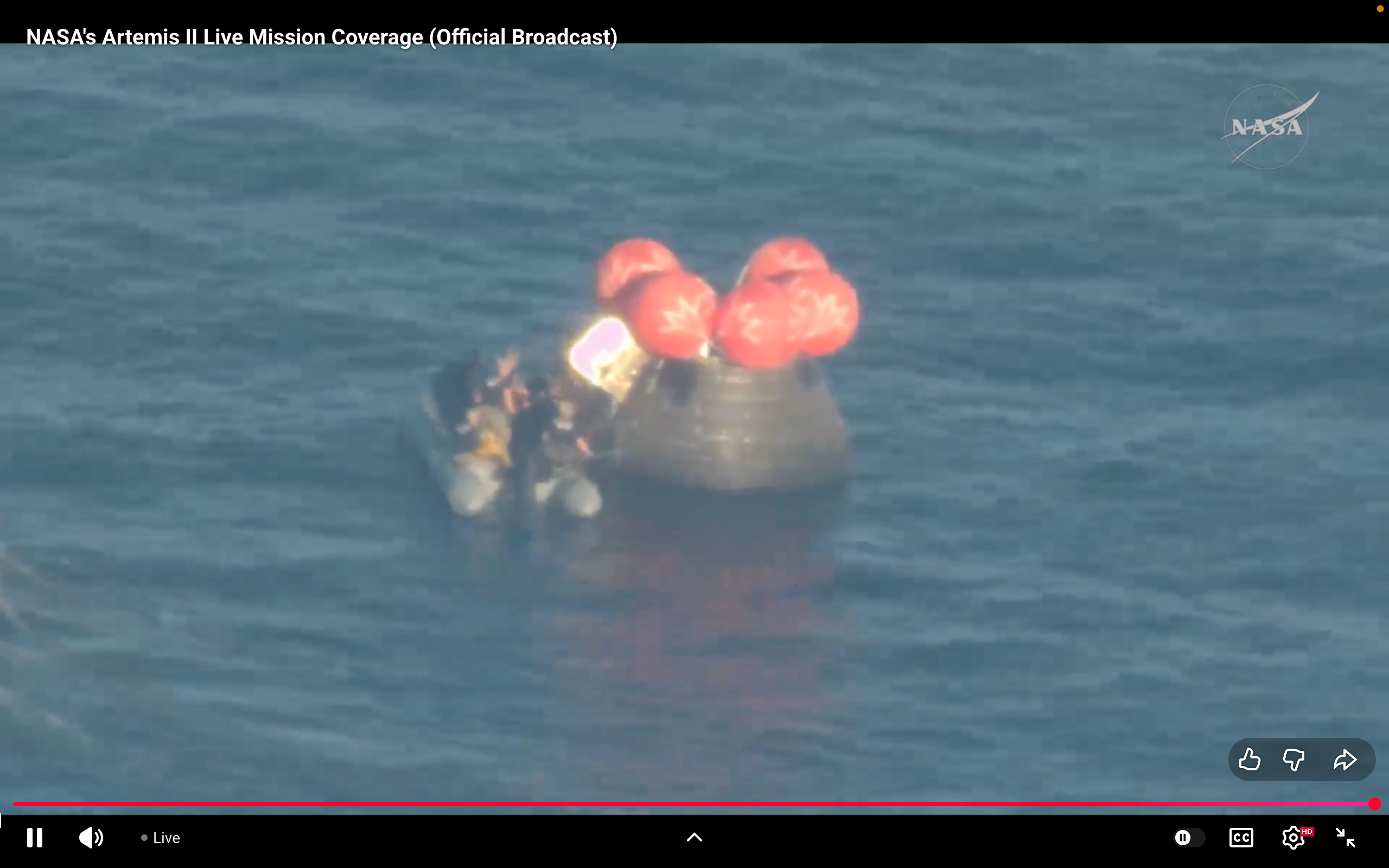 We’ve just heard from NASA that weather in the splashdown zone off the coast of San Diego “couldn’t be better”, which is scheduled for less than four hours from now.