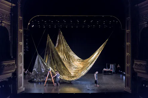 Against the backdrop of a giant golden sail, with the bare bones of the theatre on display, everything is exposed.