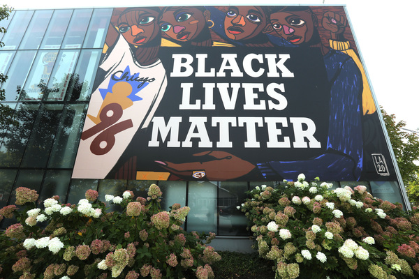 CHICAGO _ The Chicago Bulls unveiled a new mural on the exterior of the Advocate Center recently, featuring the words "Black Lives Matter" large enough for everyone passing West Madison Street to see.