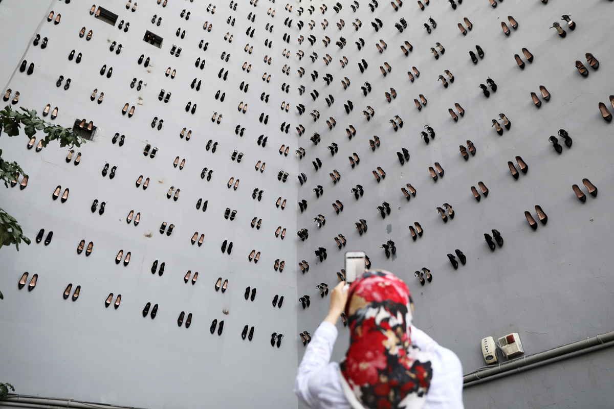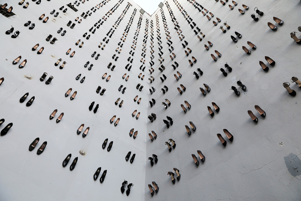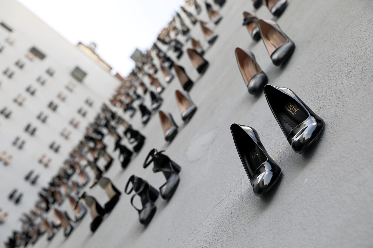 FILE PHOTO: An art installation by Turkish artist Vahit Tuna with 440 pairs of high heels, the number of women murdered by men in Turkey in 2018, symbolizing the victims of domestic violence, is pictured in Istanbul, Turkey, September 11, 2019. REUTERS/Mesude Bulbul FILE PHOTO: A woman takes pictures of an art installation by Turkish artist Vahit Tuna with 440 pairs of high heels, the number of women murdered by men in Turkey in 2018, symbolizing the victims of domestic violence, in Istanbul, Turkey, September 11, 2019. REUTERS/Mesude BulbulFILE PHOTO: An art installation by Turkish artist Vahit Tuna with 440 pairs of high heels, the number of women murdered by men in Turkey in 2018, symbolizing the victims of domestic violence, is pictured in Istanbul, Turkey, September 11, 2019. REUTERS/Mesude Bulbul