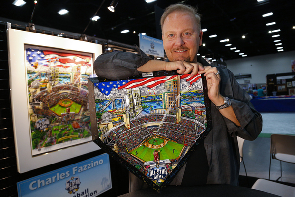 Fazzino had created a special piece for the All-Star Game, using a home plate as the canvas for a work depicting the host ballpark. It was done in the 3-D Pop Art style for which Fazzino has become famous.