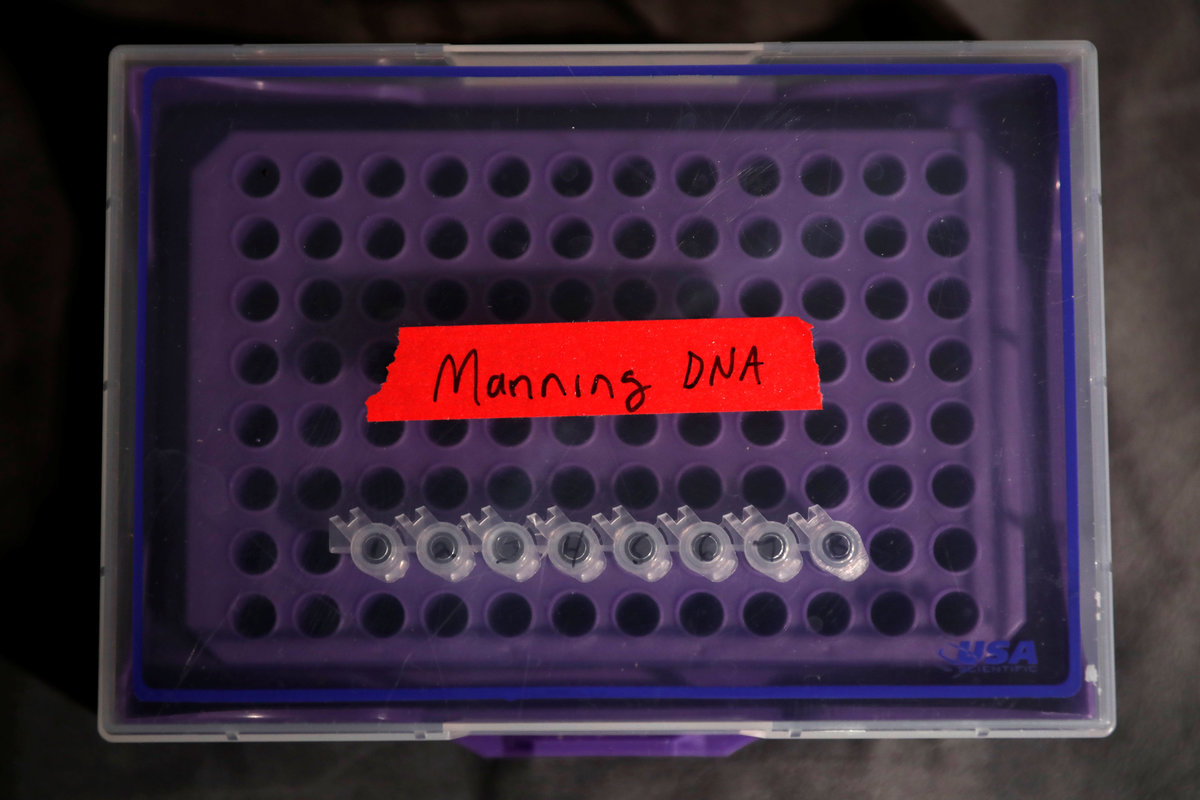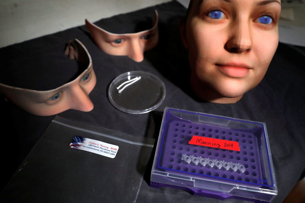 Artist Heather Dewey-Hagborg poses with 3-D printed masks created from DNA extracted from cheek swabs and hair clippings she received from formerly imprisoned U.S. Army Private Chelsea Manning while she was in jail, ahead of the August 2, 2017 opening of "A Becoming Resemblance", an exhibition at the Fridman gallery in New York City, July 7, 2017. REUTERS/Mike SegarArtist Heather Dewey-Hagborg looks at 3-D printed masks she created from DNA extracted from cheek swabs and hair clippings she received from formerly imprisoned U.S. Army Private Chelsea Manning while she was in jail, ahead of the August 2, 2017 opening of "A Becoming Resemblance", an exhibition at the Fridman gallery in New York City, July 7, 2017. REUTERS/Mike SegarArtist Heather Dewey-Hagborg holds a 3-D printed mask created from DNA extracted from cheek swabs and hair clippings she received from formerly imprisoned U.S. Army Private Chelsea Manning while she was in jail, ahead of the August 2, 2017 opening of "A Becoming Resemblance", an exhibition at the Fridman gallery in New York City, July 7, 2017. REUTERS/Mike SegarArtist Heather Dewey-Hagborg poses with various 3-D printed masks created from DNA extracted from cheek swabs and hair clippings she received from formerly imprisoned U.S. Army Private Chelsea Manning while she was in jail, ahead of the August 2, 2017 opening of "A Becoming Resemblance", an exhibition at the Fridman gallery in New York City, July 7, 2017. REUTERS/Mike SegarA hand written letter from formerly imprisoned U.S. Army Private Chelsea Manning while she was in jail sits on a table in the studio of Artist Heather Dewey-Hagborg where she created computer models for 3-D printed masks created from DNA extracted from cheek swabs and hair clippings she received from Manning, ahead of the August 2, 2017 opening of "A Becoming Resemblance", an exhibition at the Fridman gallery in New York City, July 7, 2017. REUTERS/Mike SegarA container of DNA extracted from hair clippings and cheek swabs received from formerly imprisoned U.S. Army Private Chelsea Manning is seen inside the studio of Artist Heather Dewey-Hagborg who used the DNA to create 3-D printed masks for the August 2, 2017 opening of "A Becoming Resemblance", an exhibition at the Fridman gallery in New York City, July 7, 2017. REUTERS/Mike SegarArtist Heather Dewey-Hagborg sits in her studio where she created computer models for 3-D printed masks created from DNA extracted from cheek swabs and hair clippings she received from formerly imprisoned U.S. Army Private Chelsea Manning while she was in jail, ahead of the August 2, 2017 opening of "A Becoming Resemblance", an exhibition at the Fridman gallery in New York City, July 7, 2017. REUTERS/Mike SegarArtist Heather Dewey-Hagborg works in her studio where she created computer models for 3-D printed masks created from DNA extracted from cheek swabs and hair clippings she received from formerly imprisoned U.S. Army Private Chelsea Manning while she was in jail, ahead of the August 2, 2017 opening of "A Becoming Resemblance", an exhibition at the Fridman gallery in New York City, July 7, 2017. REUTERS/Mike SegarA container of DNA extracted from hair clippings and cheek swabs received from formerly imprisoned U.S. Army Private Chelsea Manning is seen inside the studio of Artist Heather Dewey-Hagborg who used the DNA to create 3-D printed masks for the August 2, 2017 opening of "A Becoming Resemblance", an exhibition at the Fridman gallery in New York City, July 7, 2017. REUTERS/Mike SegarA container of DNA extracted from hair clippings and cheek swabs received from formerly imprisoned U.S. Army Private Chelsea Manning is seen inside the studio of Artist Heather Dewey-Hagborg who used the DNA to create 3-D printed masks for the August 2, 2017 opening of "A Becoming Resemblance", an exhibition at the Fridman gallery in New York City, July 7, 2017. REUTERS/Mike SegarArtist Heather Dewey-Hagborg holds a dish containing hair clippings she received from formerly imprisoned U.S. Army Private Chelsea Manning while she was in jail from which she extracted DNA to create 3-D printed masks ahead of the August 2, 2017 opening of "A Becoming Resemblance", an exhibition at the Fridman gallery in New York City, July 7, 2017. REUTERS/Mike Segar 3-D printed masks created by Artist Heather Dewey-Hagborg from DNA extracted from cheek swabs and hair clippings she received from formerly imprisoned U.S. Army Private Chelsea Manning while she was in jail, are seen ahead of the August 2, 2017 opening of "A Becoming Resemblance", an exhibition at the Fridman gallery in New York City, July 7, 2017. REUTERS/Mike Segar3-D printed masks created by Artist Heather Dewey-Hagborg from DNA extracted from cheek swabs and hair clippings she received from formerly imprisoned U.S. Army Private Chelsea Manning while she was in jail, are seen ahead of the August 2, 2017 opening of "A Becoming Resemblance", an exhibition at the Fridman gallery in New York City, July 7, 2017. REUTERS/Mike Segar