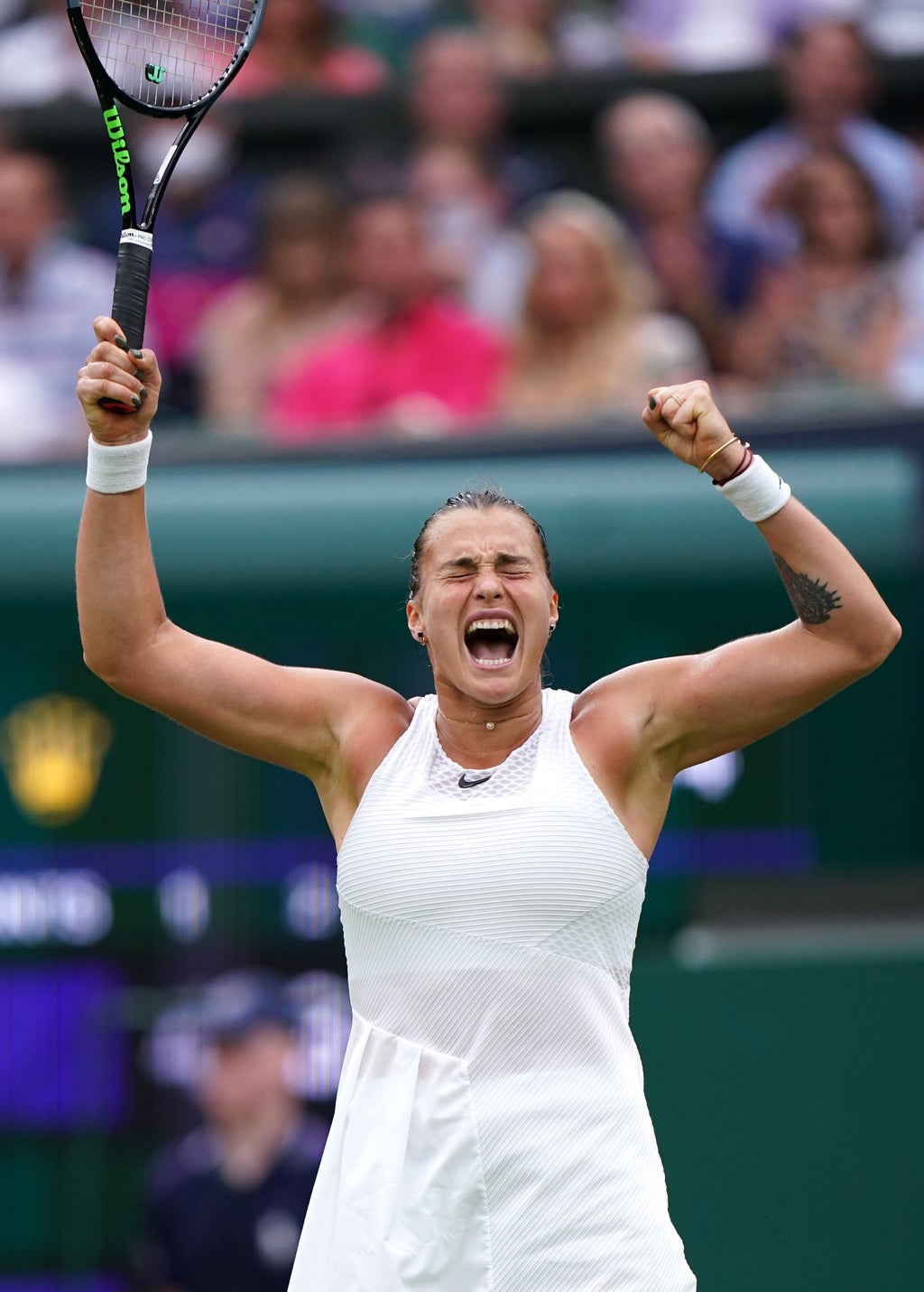 Second seed Aryna Sabalenka powered into her first grand slam semi-final with victory over Ons Jabeur at Wimbledon