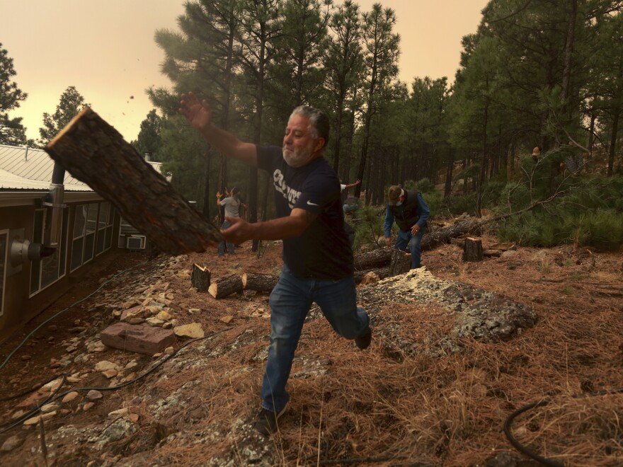 Jesus Romero, the deputy manager of San Miguel County, on Monday was helping a family monitor their home amid smoky ash-laden air. He cut down trees around his garage as a fire-prevention measure and talked with other residents who were undecided about whether to leave. He called the situation serious.