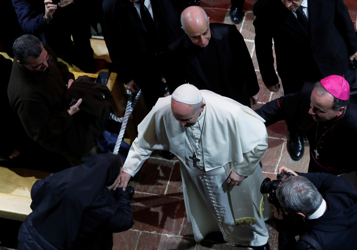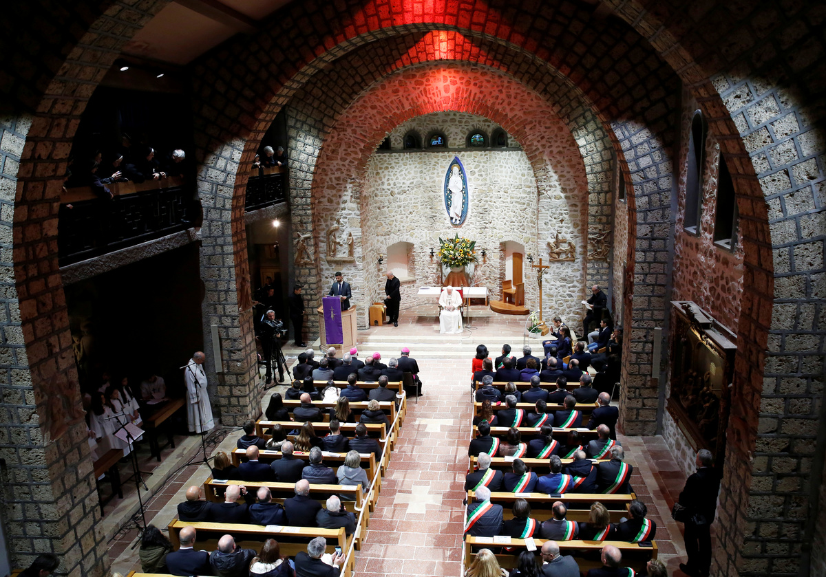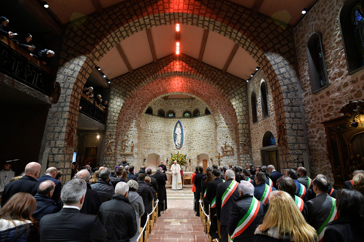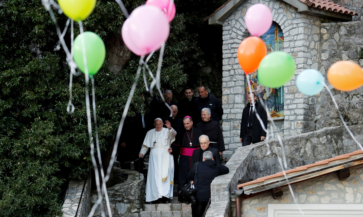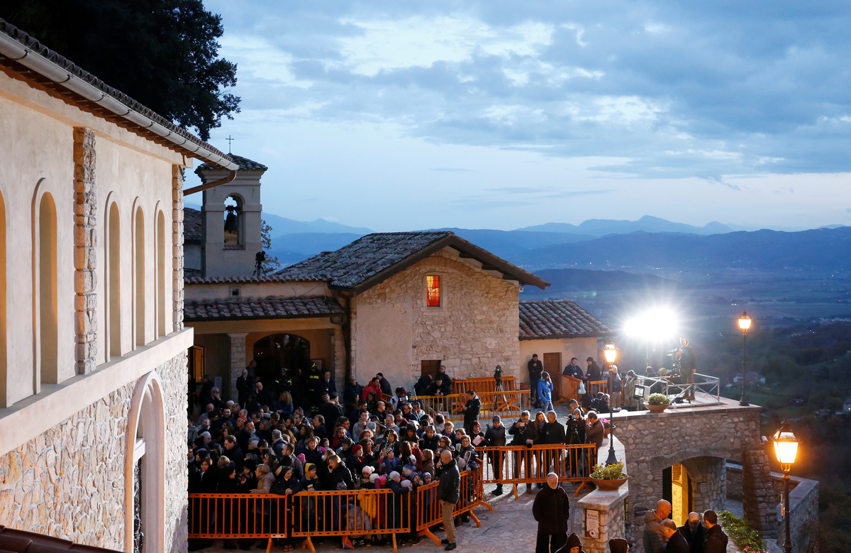 The pope travelled to the town of Greccio, east of Rome, to visit the spot where St. Francis of Assisi started the tradition by setting up the first nativity scene in 1223.
