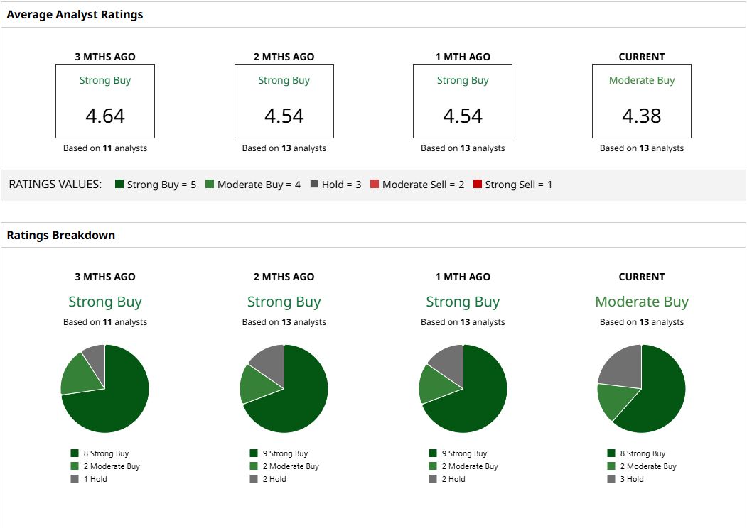 Of the 13 analysts that cover CLSK stock, eight have a “Strong Buy” rating, with no “Sell” or “Strong Sell” ratings from any analyst. H.C. Wainwright was the latest to join the list of analysts bullish on the stock with a “Buy” rating. With the data center pivot, this optimism is likely to stay strong unless evidence emerges that the company is unable to execute.