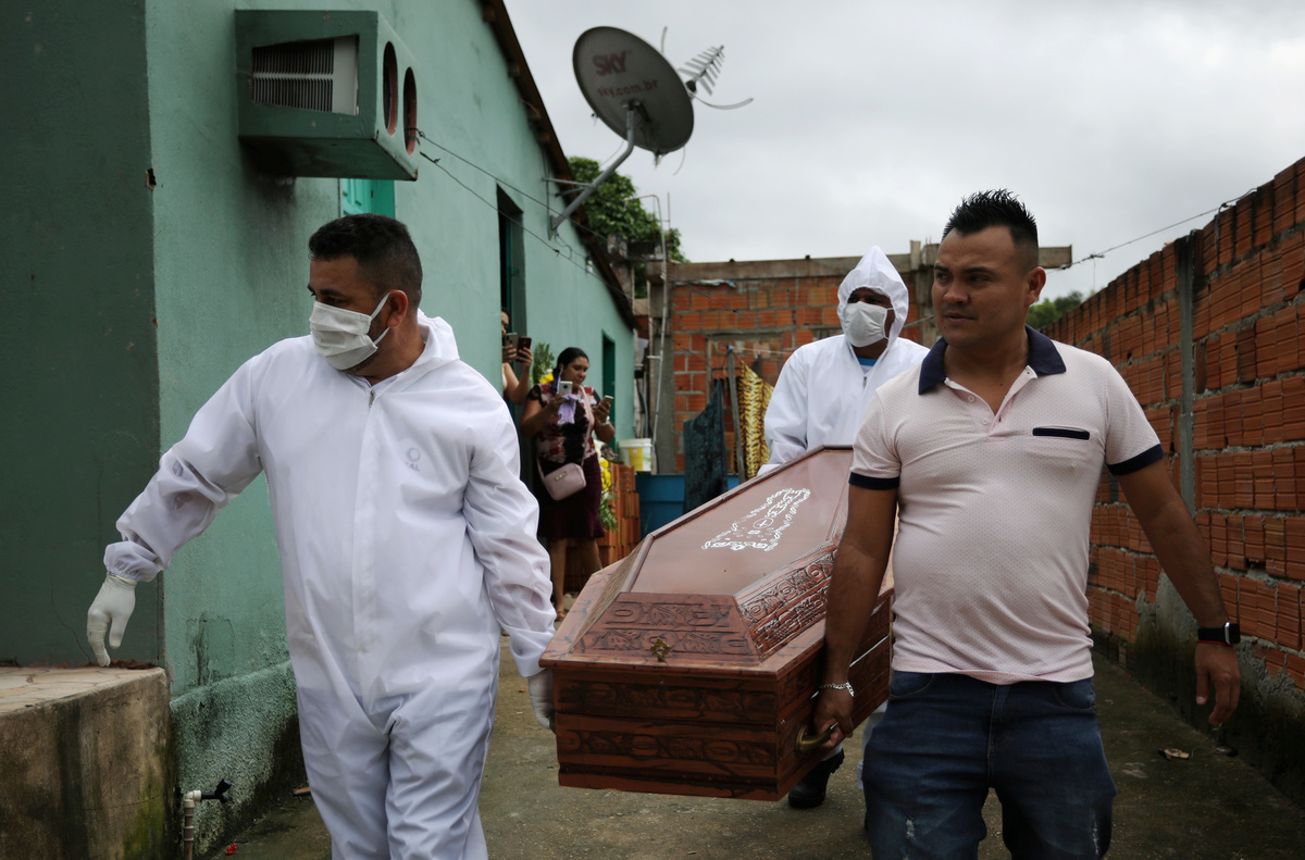 Officials in Manaus, state capital of Amazonas, said they were out of hospital beds and struggling to keep pace with the burials needed. The largest of nine states in Brazil's Amazon rainforest, Amazonas has registered nearly 19.4 coronavirus deaths per 100,000 residents, compared to 4.4 for all of Brazil, according to a Reuters calculation based on the death toll released by the federal Health Ministry on Thursday.