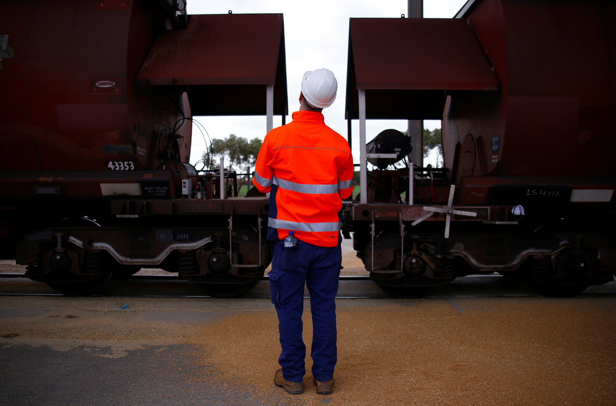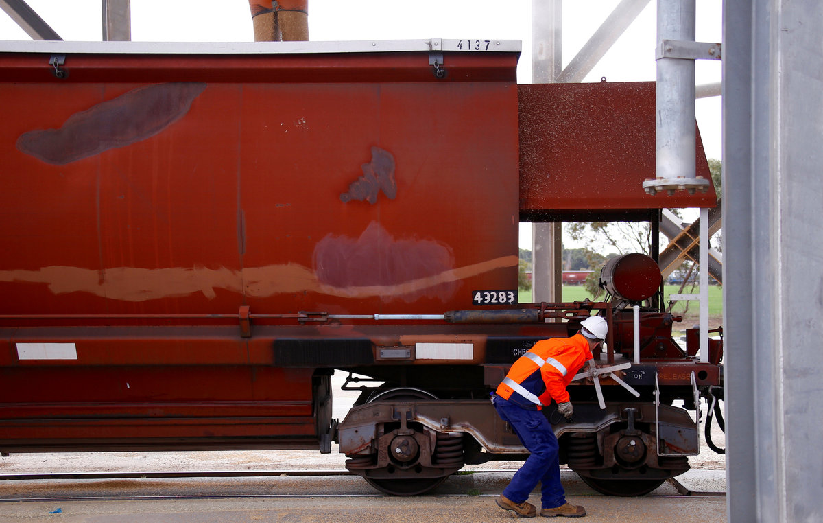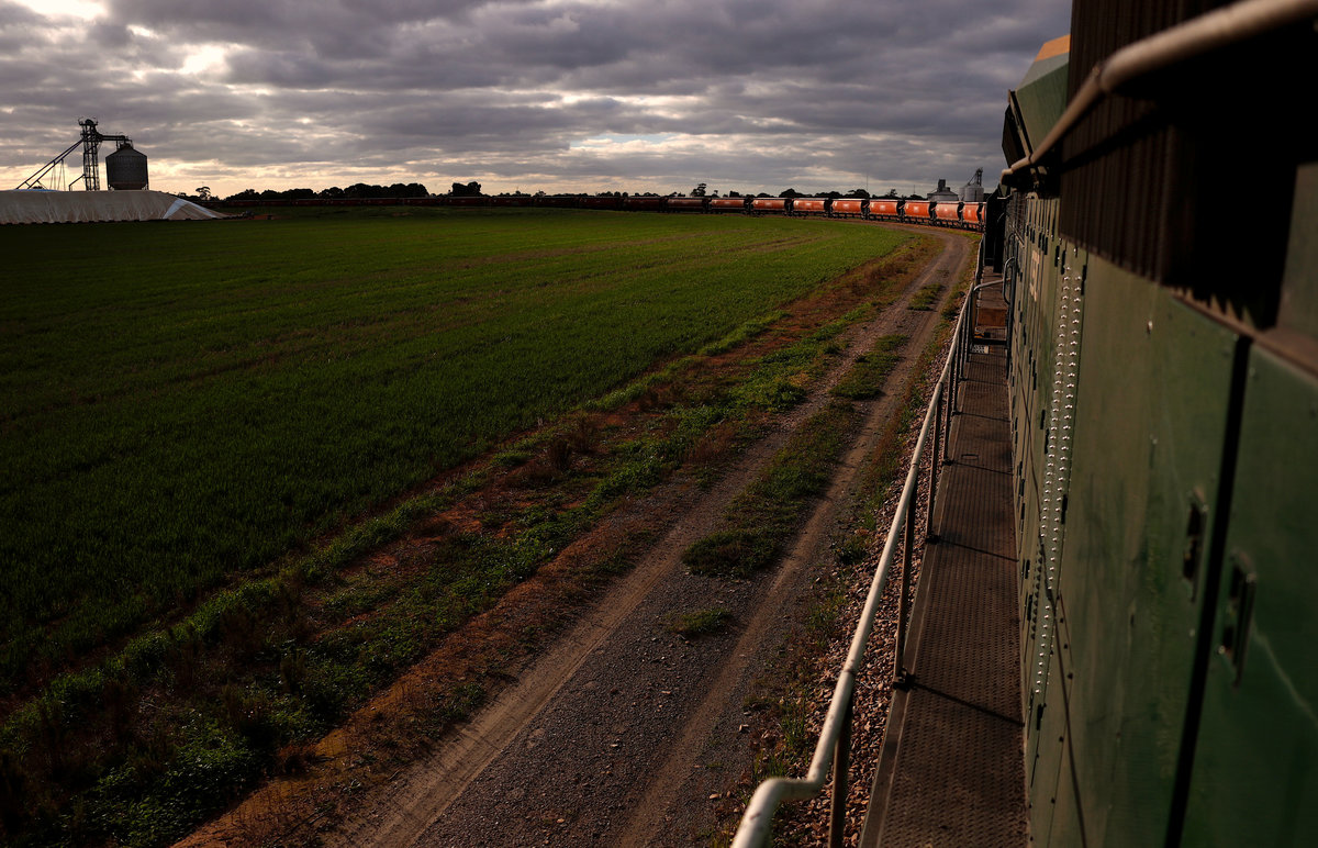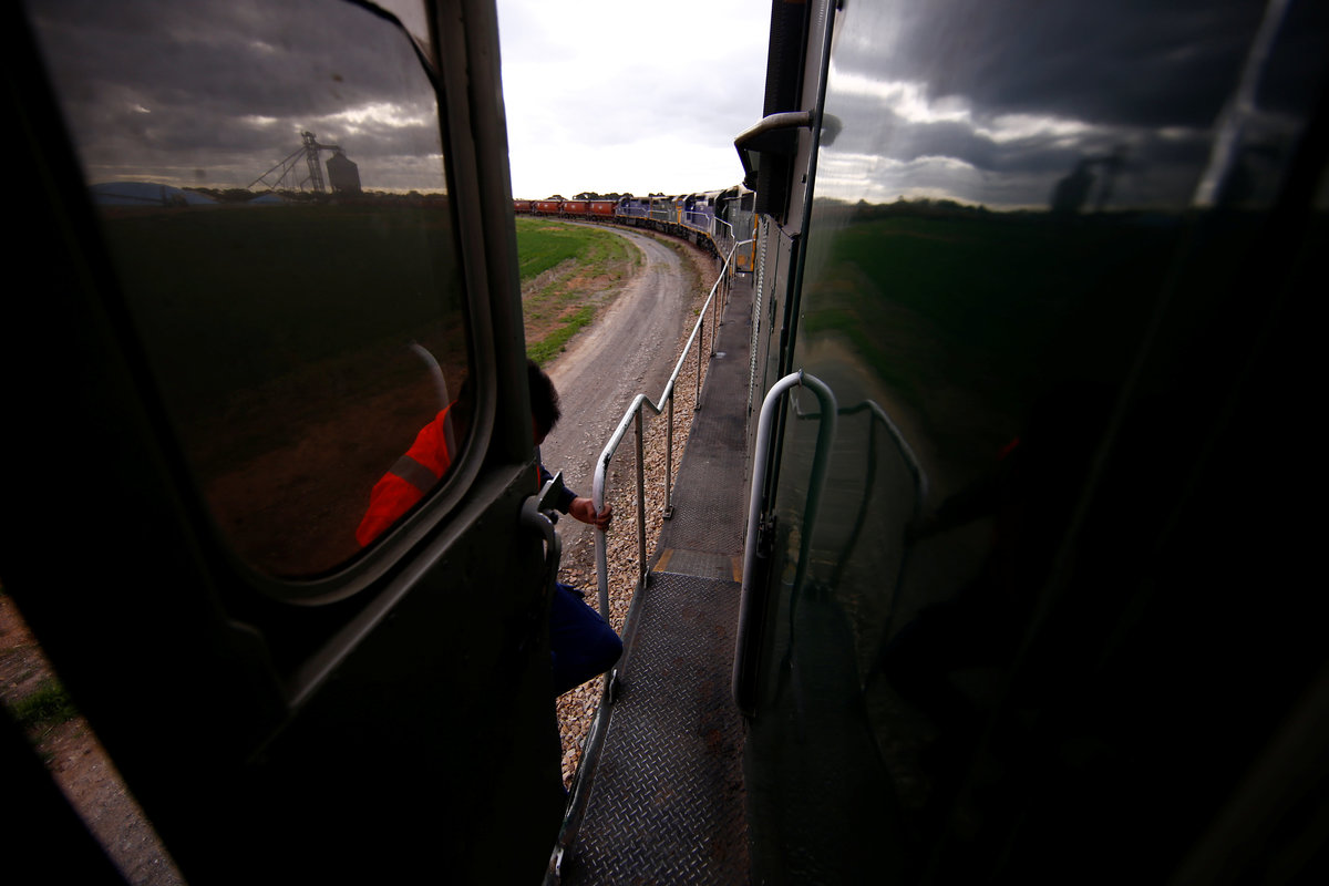 MALLALA, Australia (Reuters) - Until a few months ago, train driver Gavin Slater had never seen anything like it. Five locomotives, with a combined 15,000 horsepower, ready to pull 101 wagons brimful of grain.