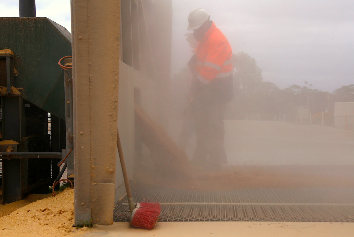 The converted coal carriages behind Slater were being loaded in Mallala, a town of several hundred people in Australia's fertile southern wheat belt.