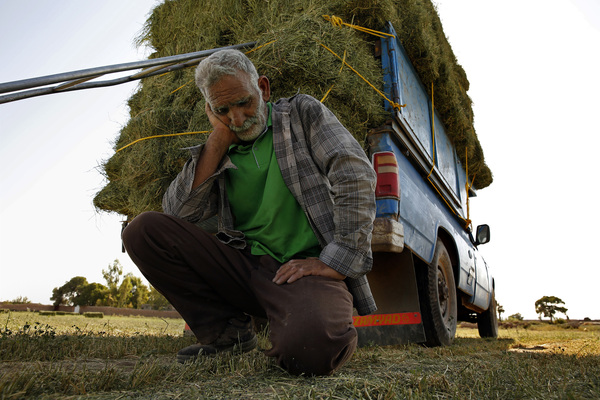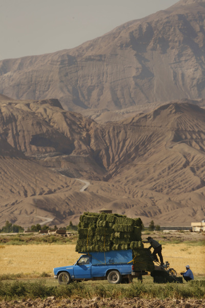 Baluchi looked weary as he and a partner, a migrant from Afghanistan, loaded up a truck with bales of hay. Hauling the feed is his only source of income now, earning him and his wife about $300 a month, after the farm in which he was a part-owner was left unplowed because of a lack of water.
