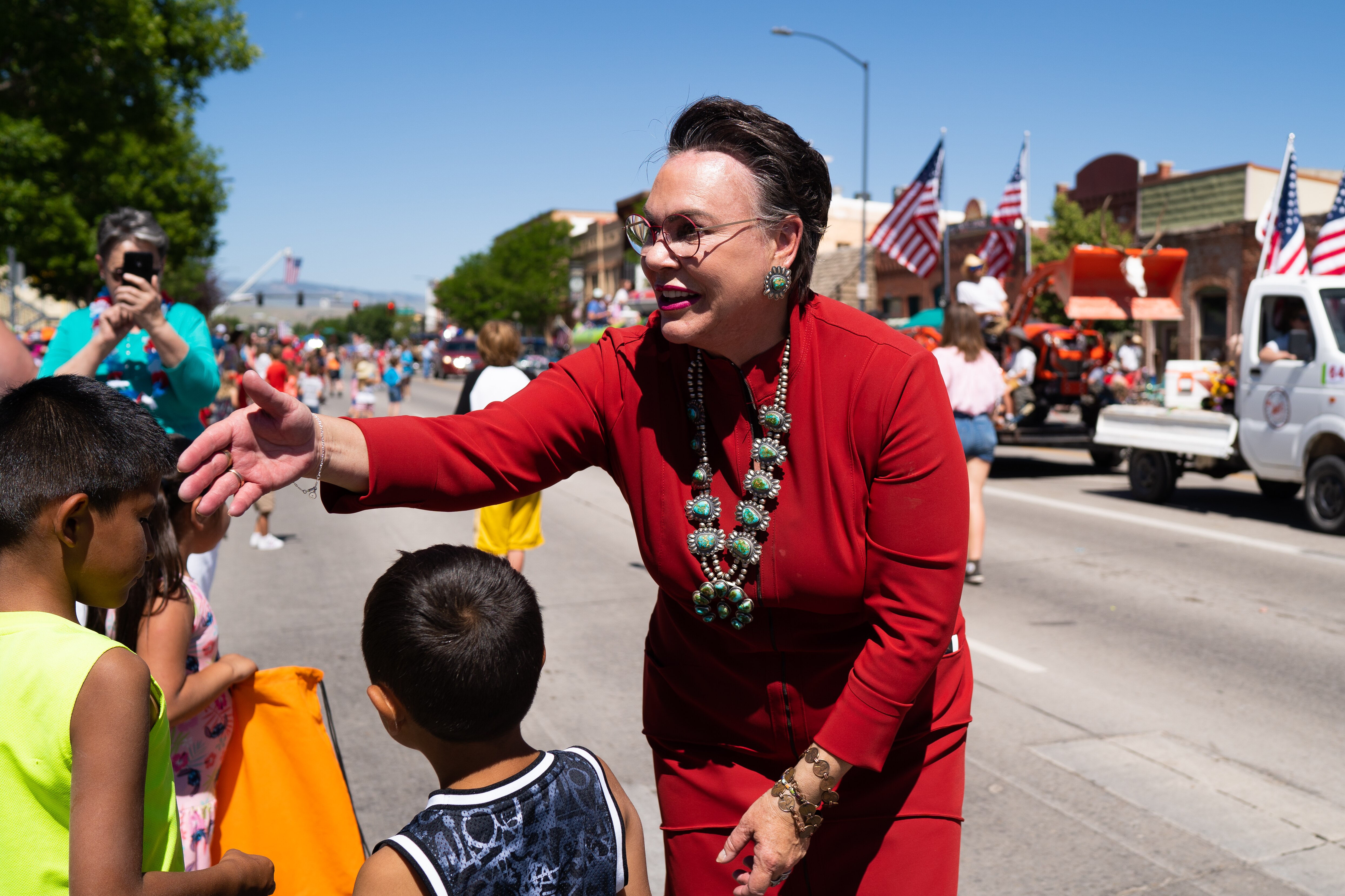 The ABC found out Ms Hageman was on the hustings at a July 4 parade in the small town of Lander, so we deviated from our road trip to see her in action.