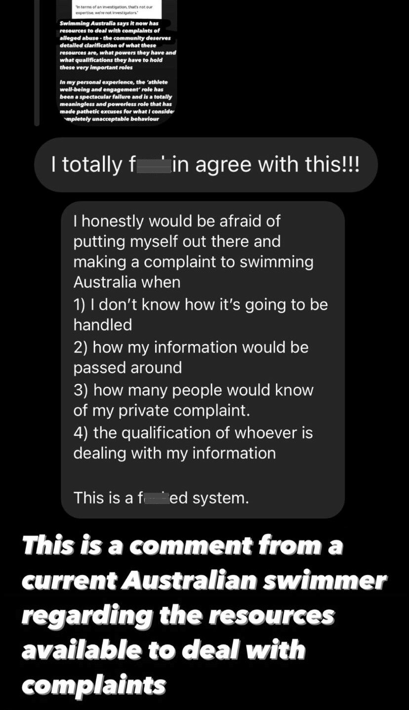 The central problem is one that Madeline Groves highlighted this week in an Instagram post in response to the allegations of historic sexual abuse in swimming.