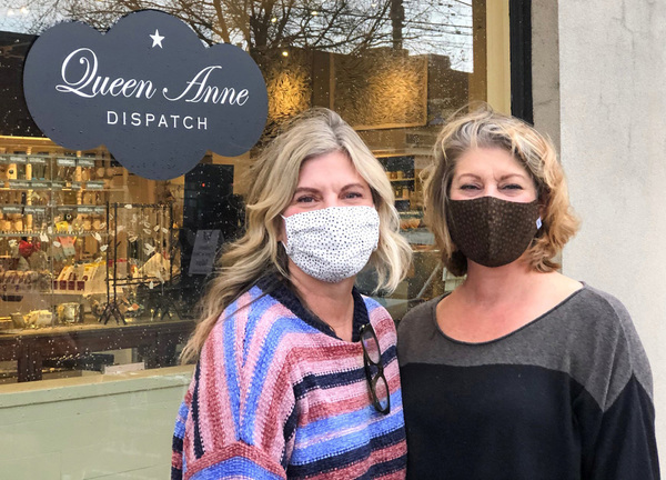 Sisters Sabrina Rinderle, left, and Tara Espinoza, co-owners of Queen Anne Dispatch in Seattle, say the pandemic policies and adaptations they've put in since the first round of restrictions in March will likely make this second round more tolerable. One huge advantage, Espinoza says, is that customers are now accustomed to masks and other the safety protocols. "They know what to expect." (Paul Roberts/The Seattle Times/TNS)
