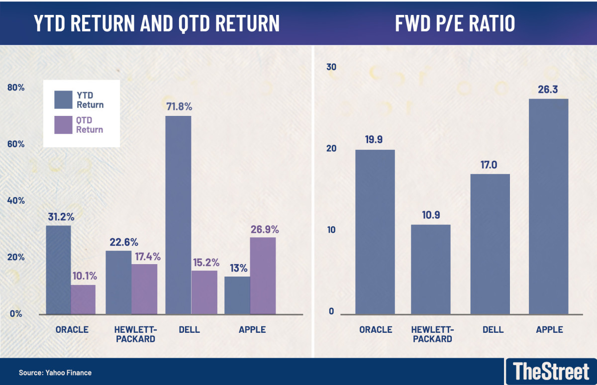 For example, Oracle (ORCL) shares are up 31.21% year-to-date and 10.13% for the quarter so far. The software company's stock surged more than 13% on Wednesday, June 12, after reporting fourth-quarter results.