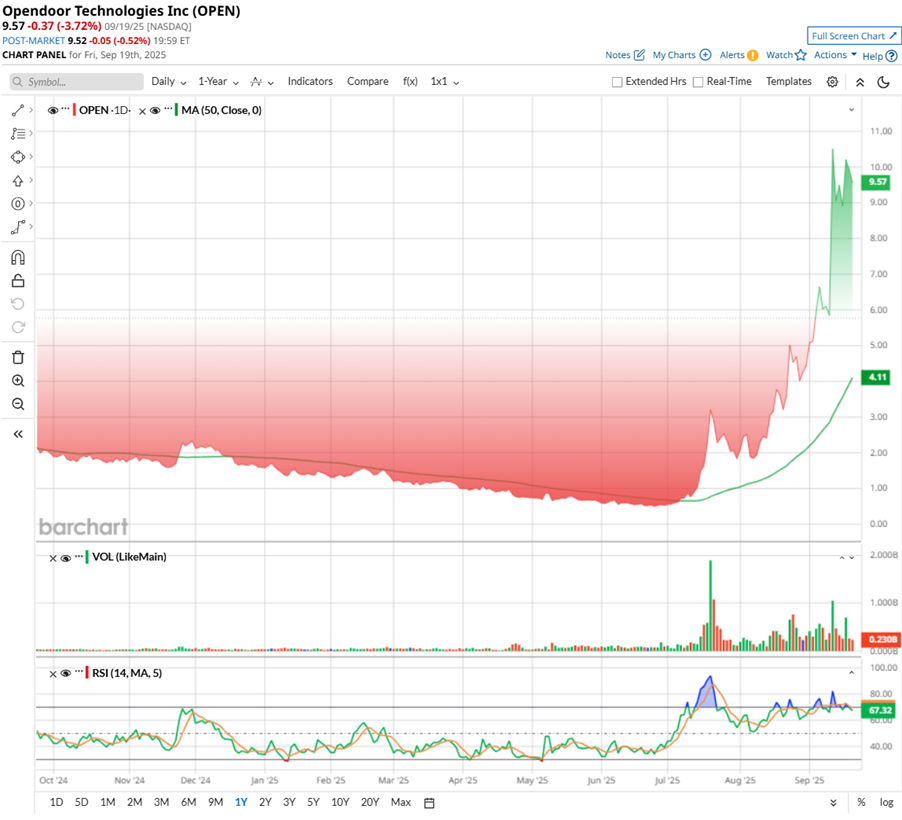 Technically, the stock is showing pronounced strength. OPEN trades well above its 50-day moving average, and the 14-day RSI sits at 67.3, signaling robust bullish momentum while edging toward overbought levels.