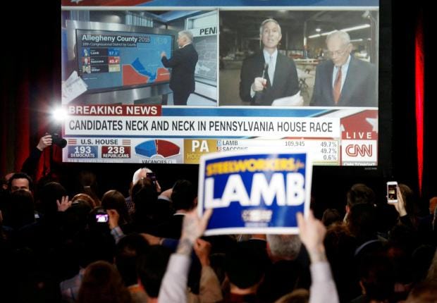 True, their candidate Rick Saccone came tantalisingly close. So much so he was holding off conceding to his Democrat opponent Conor Lamb, who had gone ahead and claimed victory despite leading with only 0.03 per cent – or about 600 votes – across a district that stretches from the suburbs of Pittsburgh, to coal and farming country on the West Virginia border.