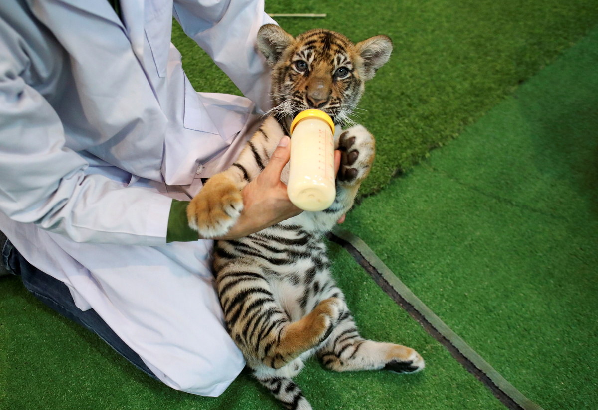 Around 50 of the big cats live at the Tiger Kingdom zoo in Chiang Mai, 700km (435 miles) north of Bangkok, according to Patchara Chanted, coordinator of the tiger handlers there.