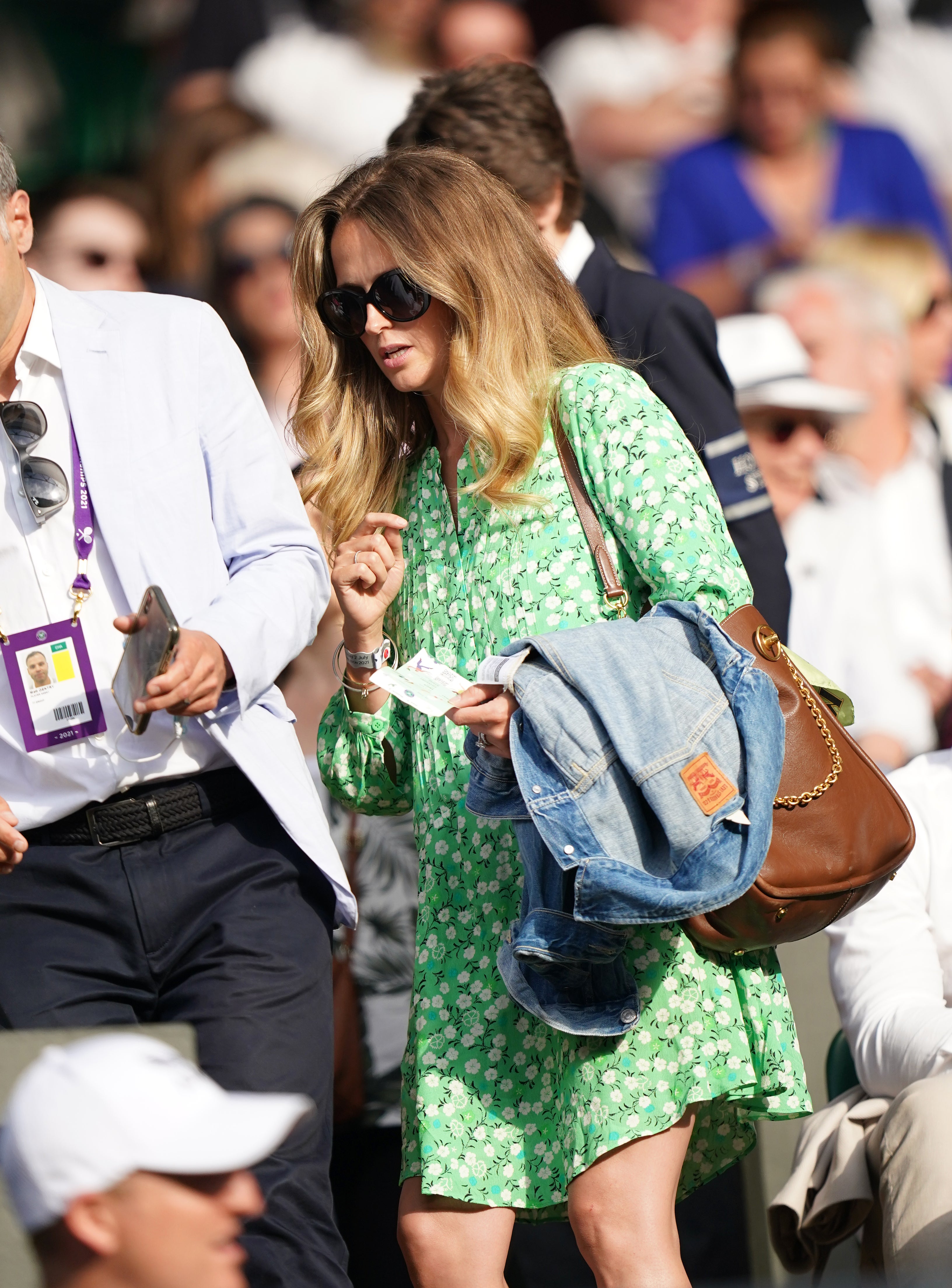 Kim Sears kept things sunny to cheer her husband Andy Murray on from the stands: for one appearance, she donned a bright green minidress from Whistles (£129).