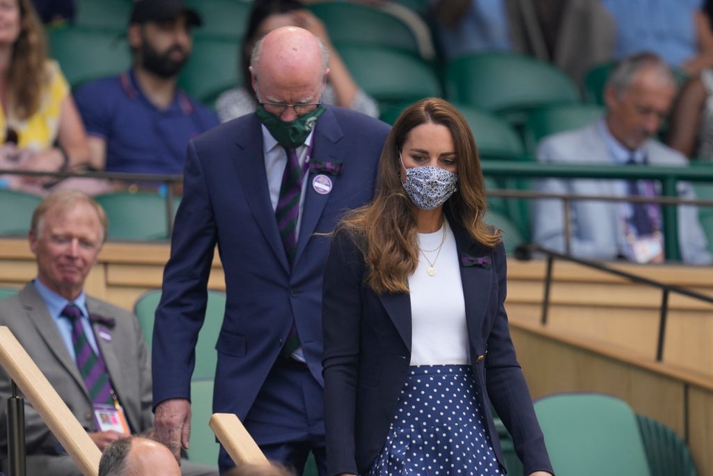 A long-time tennis fan and patron of the All England Lawn Tennis Club, the Duchess of Cambridge knows how to nail the Wimbledon fashion brief. This year, her outfit had a distinctly Diana-inspired, Eighties feel to it: a navy and white polka dot midi skirt (originally £795 from Alessandra Rich), the Classic Duchess Blazer by Smythe (£525), paired with simple white heels and a T-shirt.