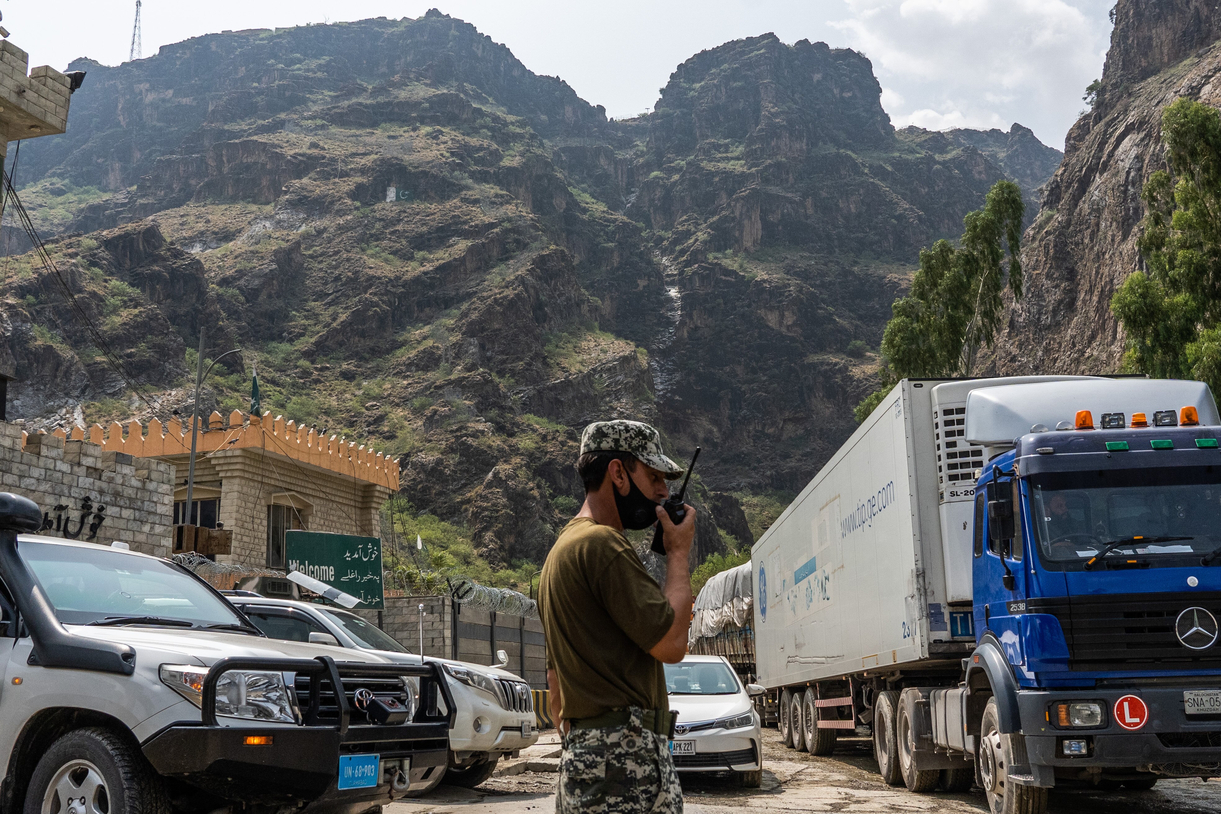 Hundreds of trucks, some laden with goods, some empty, queued for kilometres along the Khyber Pass, the mountainous route leading up to the Torkham crossing on the Pakistani side.