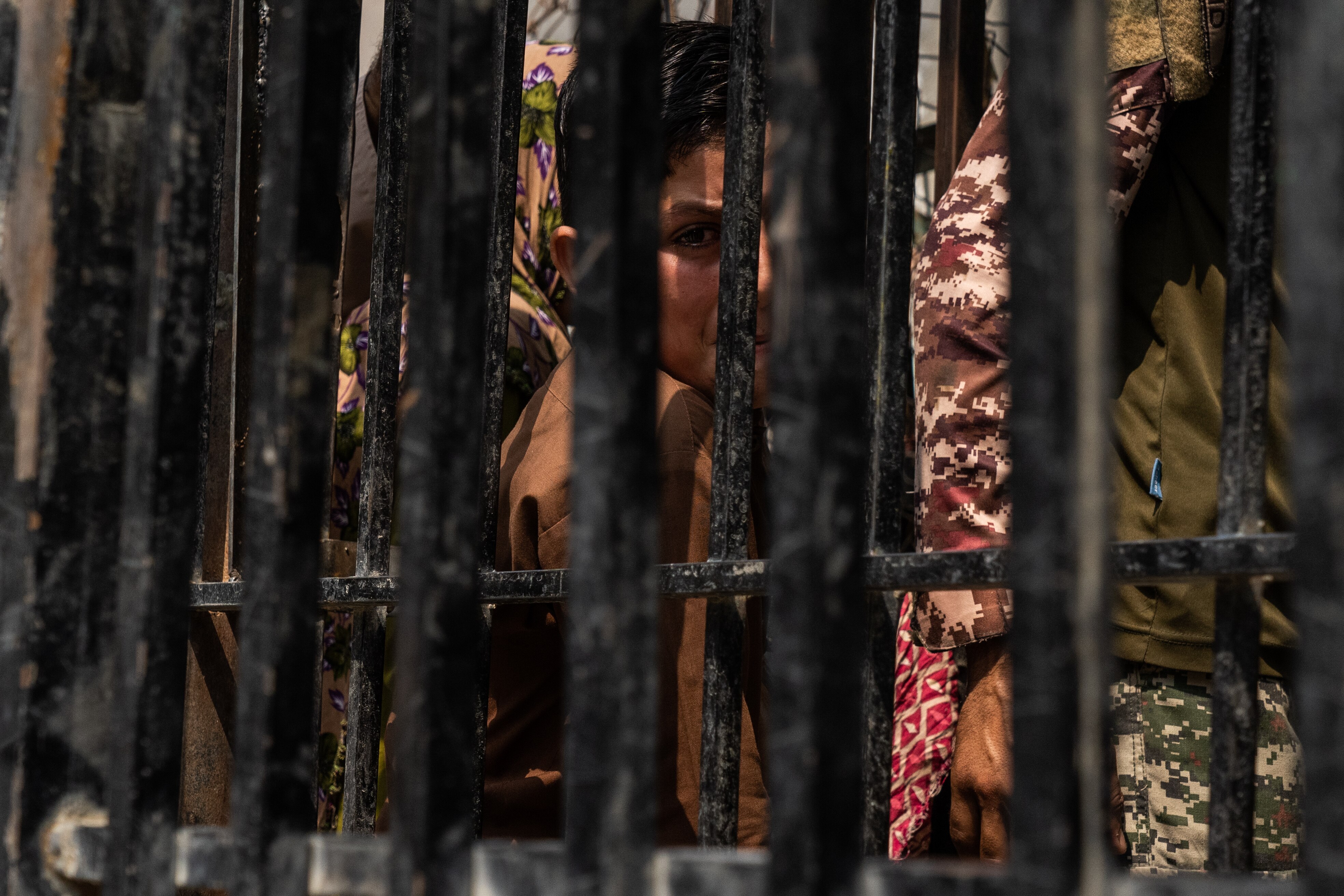 A boy, seemingly without parents or family, clutched his belongings and cowered in tears at the gate to the corridor as Afghans pushed past him.