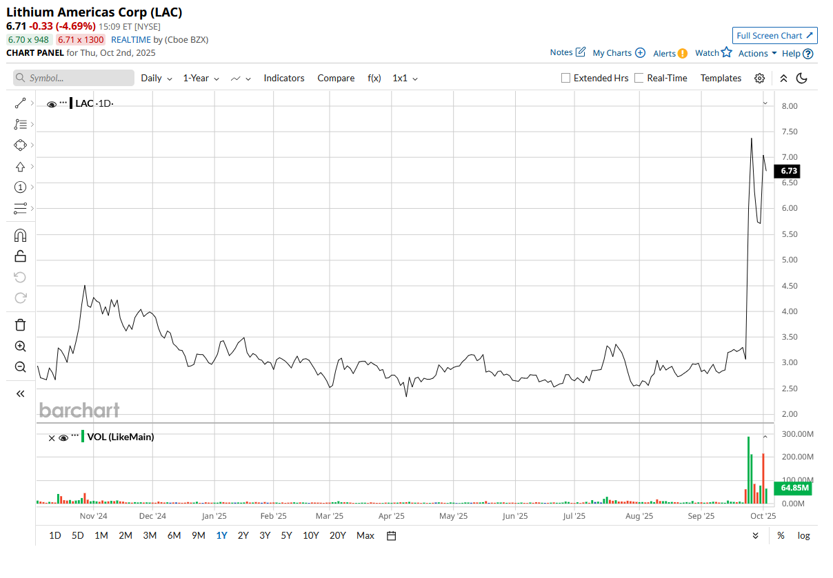 Yesterday, Sept. 1, LAC stock saw a smaller but still significant 23.3% spike on the announcement of the White House following through with the investment.