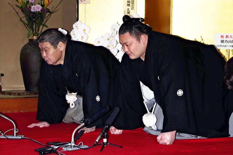 "I will not embarrass the ozeki title," Asanoyama said. "I will adore sumo, do it justice as a wrestler and give my utmost effort."