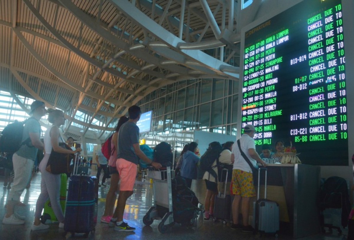 Anxious passengers thronged Bali's airport, waiting for news about their flights.