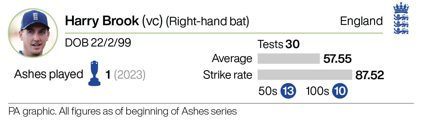 “Harry Brook’s numbers are incredible but it will be a really interesting challenge having never played Test cricket in Australia before, and not had a great deal of success in white-ball cricket there (averaging 9.85 in T20 internationals and 6.29 in the Big Bash).”