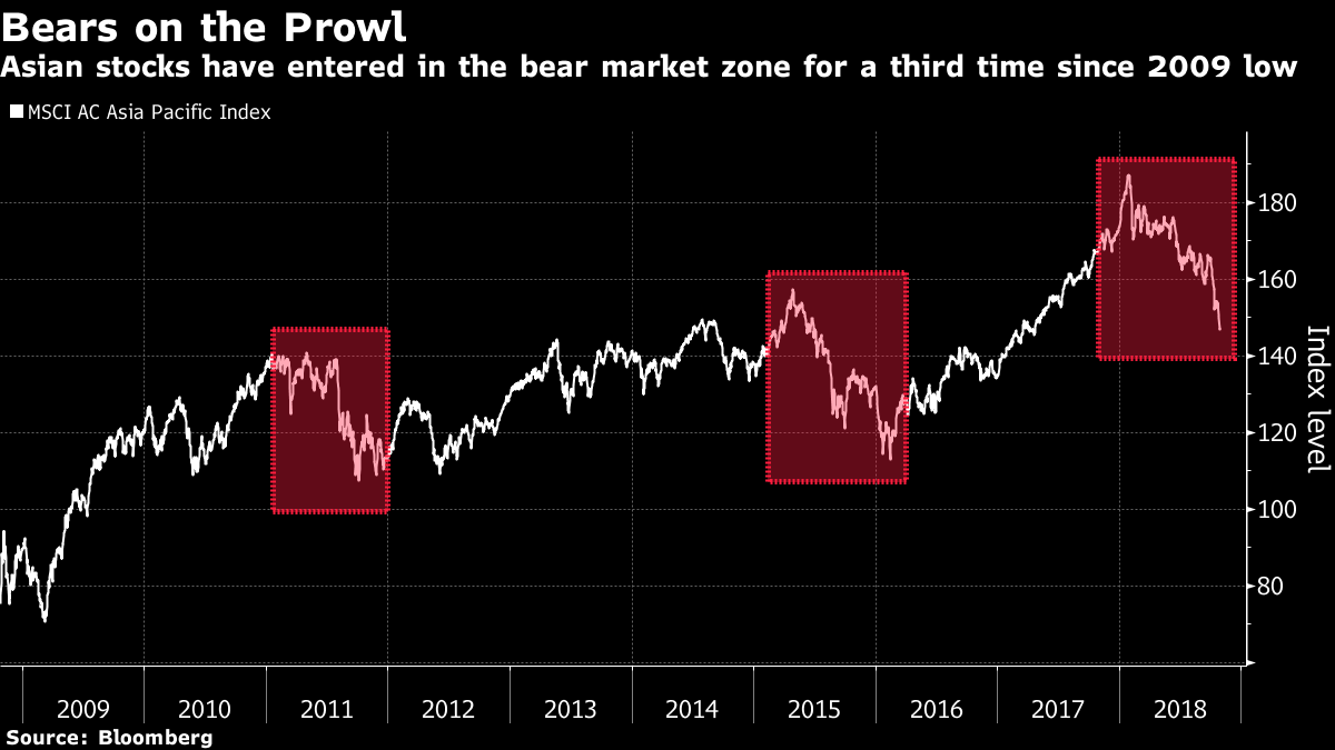 It’s probably too late to bail anyway, with equities down 20 percent since January. But from Hong Kong to Australia, Japan to Singapore, bulls say they’re steadfast, convinced the 2018 bear market is just one more thing they must navigate if they expect to end up ahead.