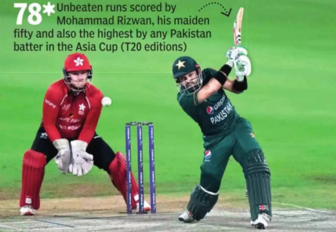Mohammad Rizwan had to work hard for his 78 off 57 balls as Pakistan got a much-needed final flourish to post 193 for two against Hong Kong. Hong Kong were simply blown away in the run-chase with the Pakistani attack proving to be too good for them. Their innings folded up for just 38 in 10.4 overs, sending Pakistan into the Super 4s as the second placed team from Group A.